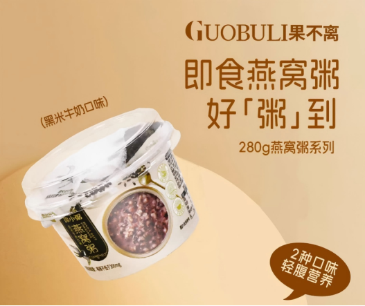 果不离燕窝粥是以珍贵燕窝为原料,搭配冰糖、椰奶或谷物熬制的养生粥品,融合燕窝的细腻胶质与粥底温润口感,适合各类人群日常对高端食品的需求,果不离燕窝粥可开盖即食,冬天也可以微波加热,方便便捷。产品配料方面,包含饮用水,生榨椰浆,燕窝,燕麦米,糯米,白藜麦,青稞,冰糖,银耳;产品味道方面,口感柔滑细腻,晶莹软糯的胶质浓稠感,入口如丝般顺滑,带有淡淡的天然清香;产品包装方面,采用PP材质杯体,健康环保,便捷美观,可微波加热;产品工艺方面,采用现代化技术文火慢熬的方式。果不离始终致力于大健康食品领域的研究与开发,以提供高品质的燕窝粥食品为己任。